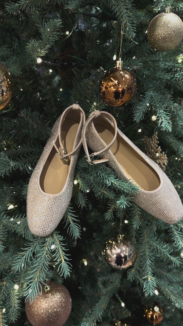 These beautiful sparkly champagne girls’ shoes in leather are designed with adjustable straps for a perfect fit. They are covered in delicate rhinestones that shimmer with every step. Perfect for weddings, parties, or formal events.