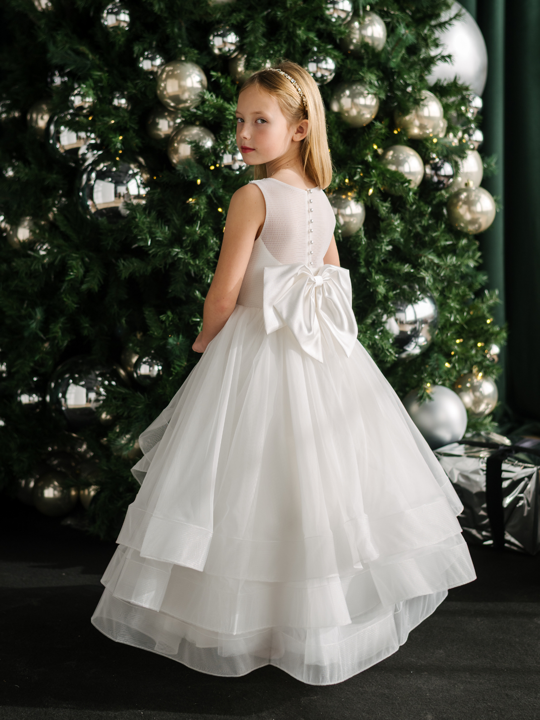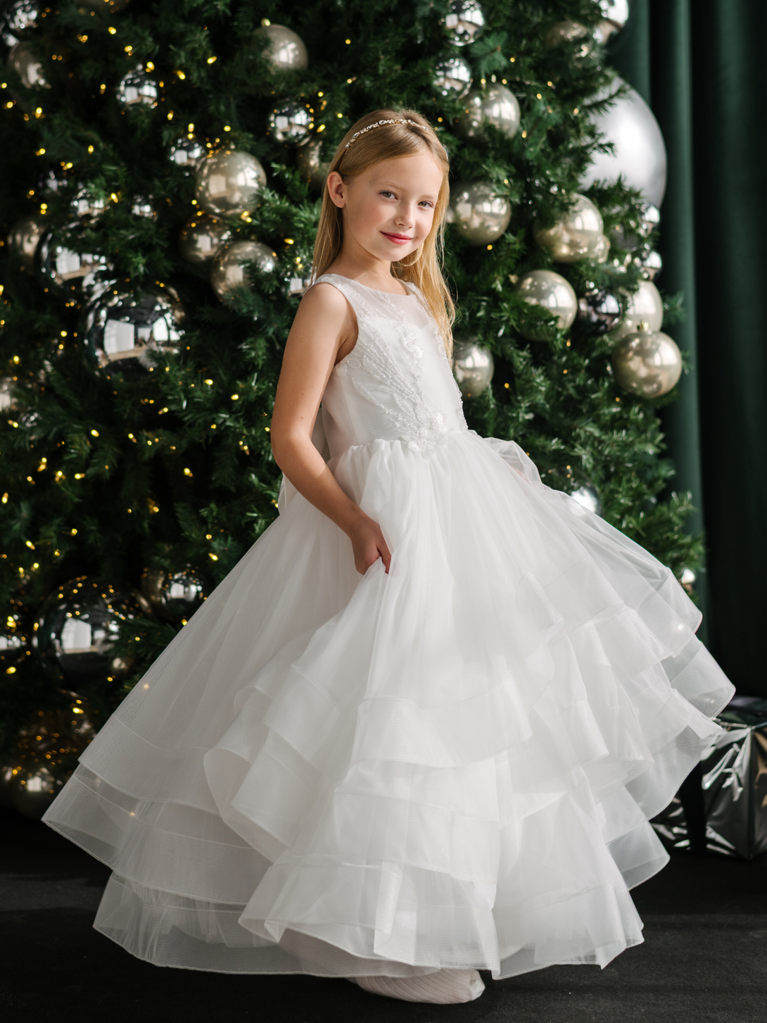 Billie - Off-White Tiered Tulle Communion Dress with Lace Bodice