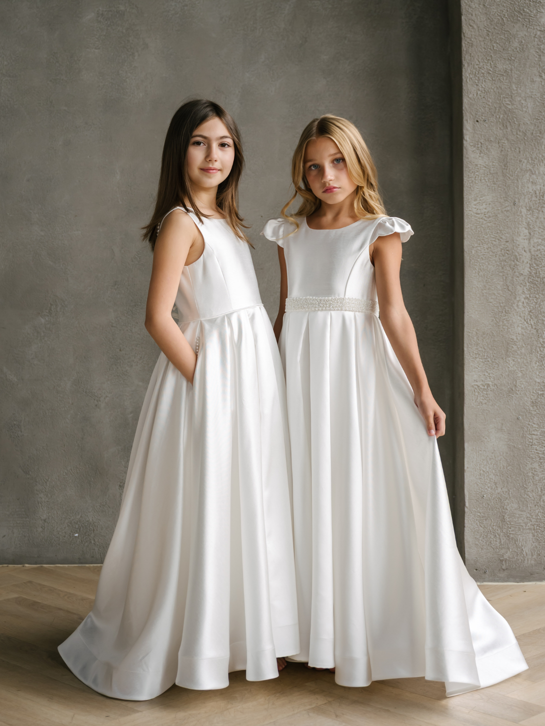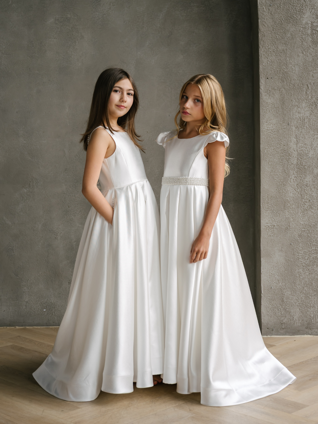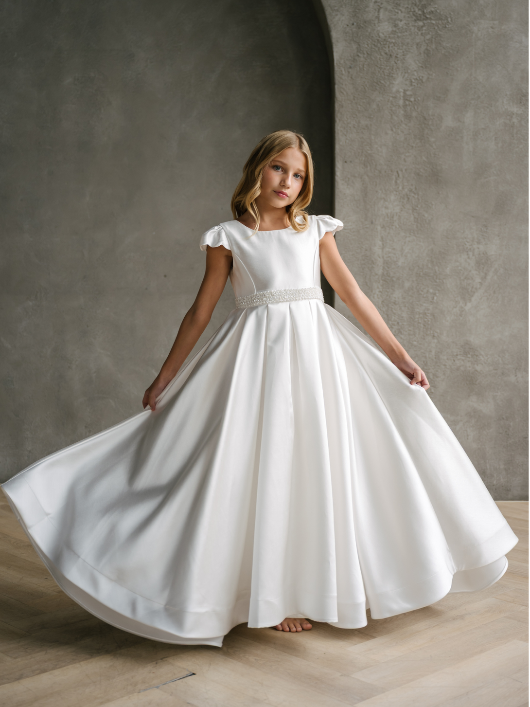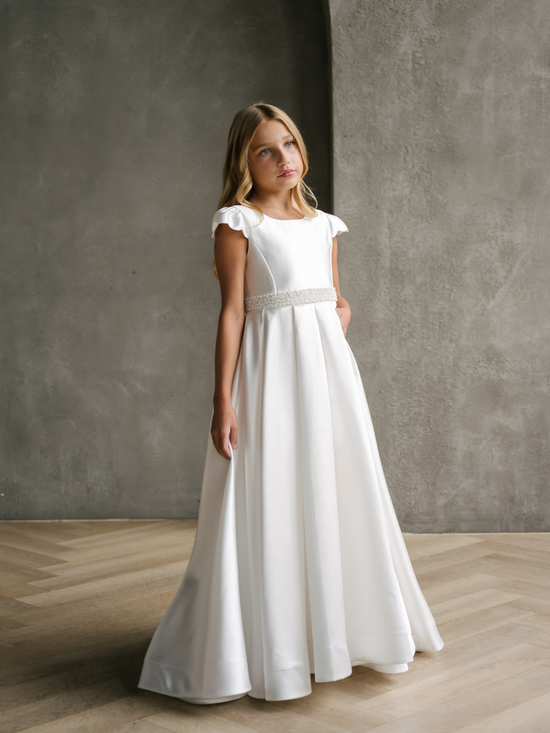 Charlotte - Girl's Satin Communion Dress Beaded Waist