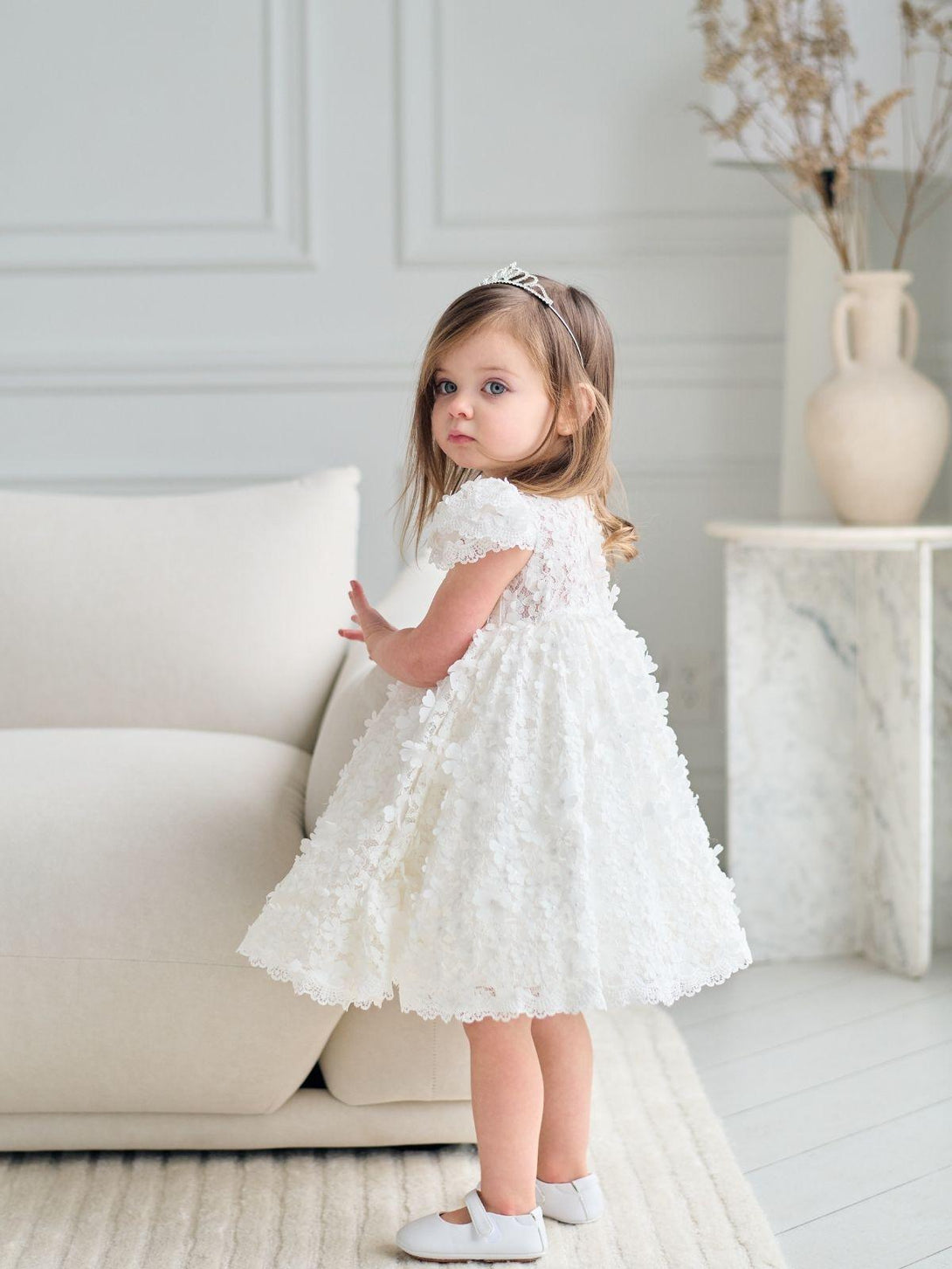 Floral - Baby Girl's Baptism Off White Lace Dress