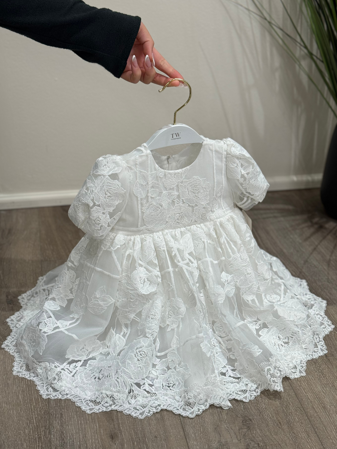 Harriet - Baby Girl's Baptism Off White Lace Dress 3/4 Sleeves.