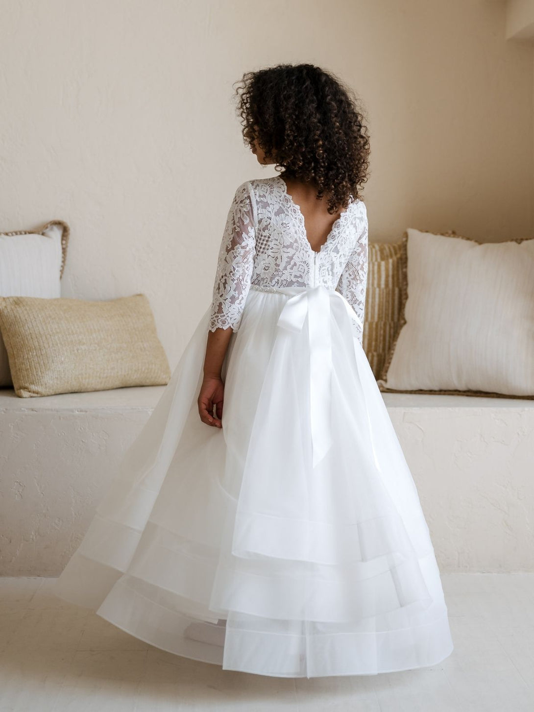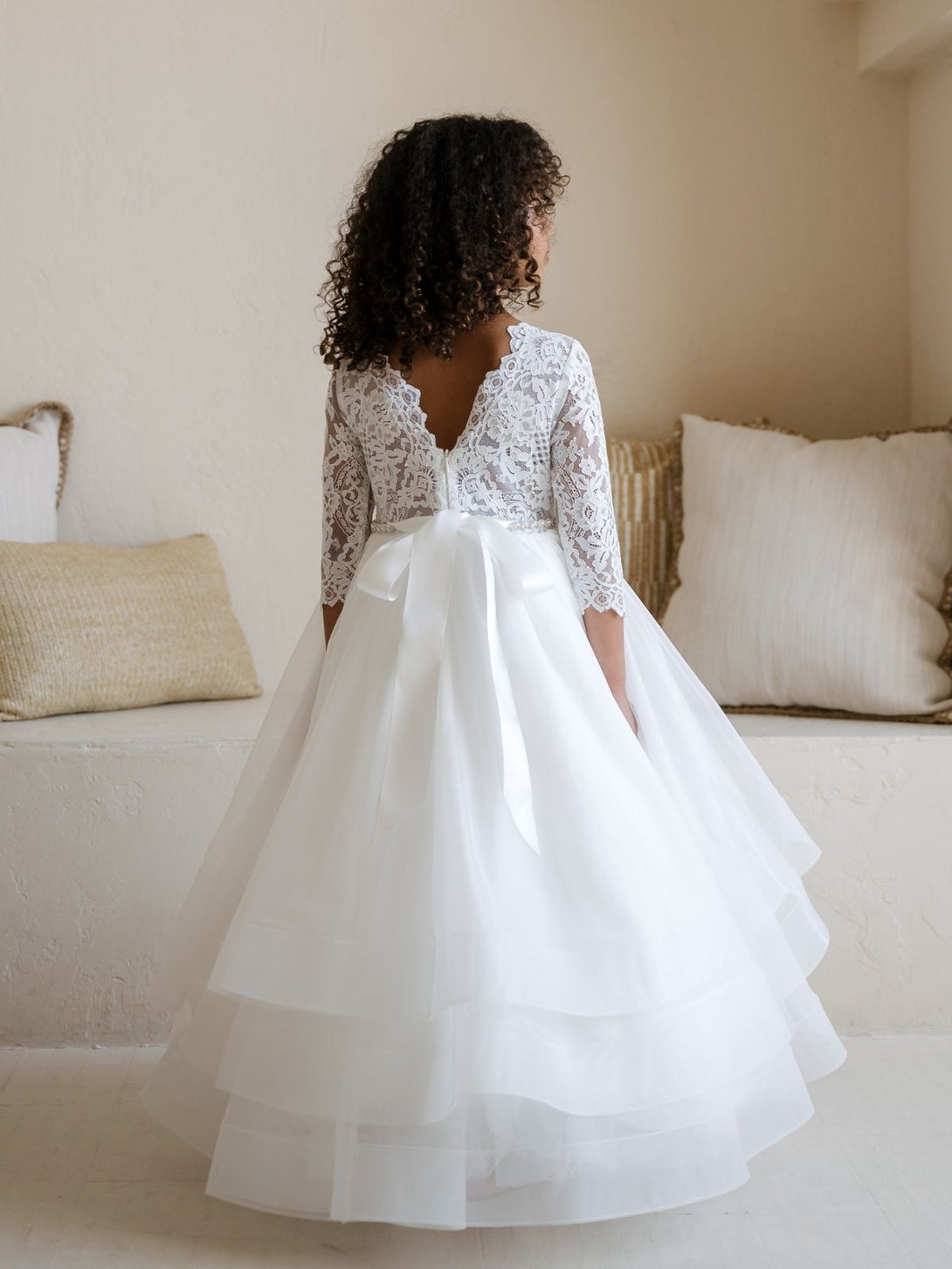 Lucille - Girl's Communion Off White Lace Horsehair Dress.