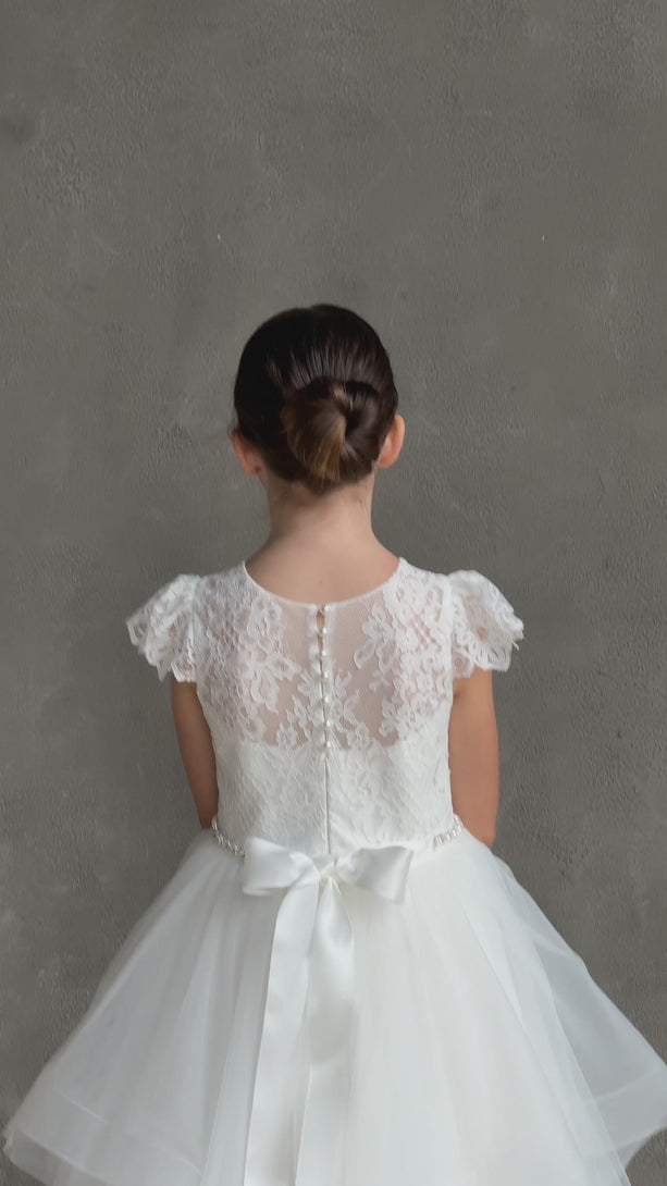 Oretta - Girl's Lace Cap Sleeve Horsehair Communion Dress