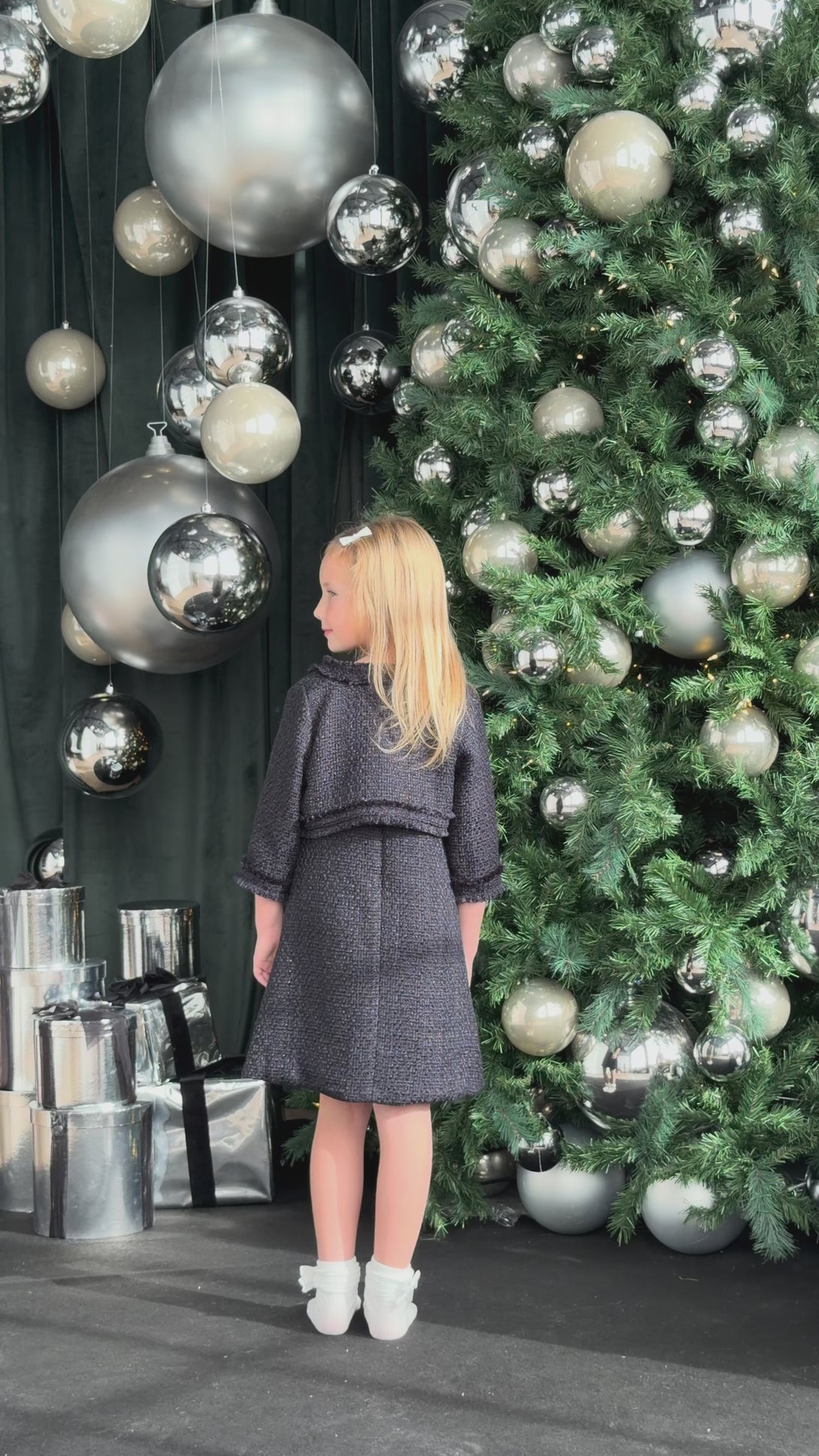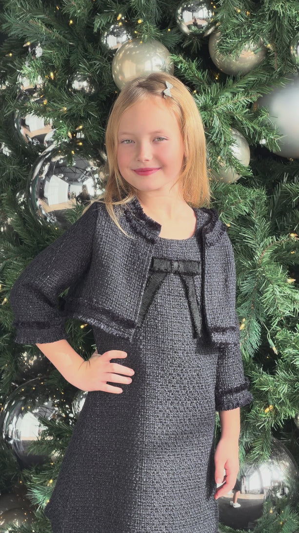 Sophisticated and timeless, the D61 dress offers a refined look for any girl’s special day. Crafted from rich, textured tweed, the dress combines classic elegance with subtle, modern charm. The fitted bodice features a clean, round neckline creating a polished silhouette, while the lightly flared skirt flows gracefully for a comfortable and flattering fit. Perfectly coordinated with the AF61 jacket, this dress is designed to create a cohesive, stylish outfit that balances structure with softness.
